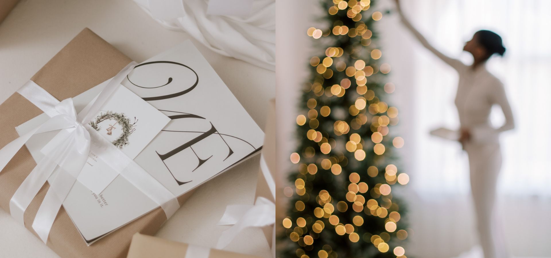 Postkarte "half christmas wreath" mit Golddruck, 10er Set mit Umschlag