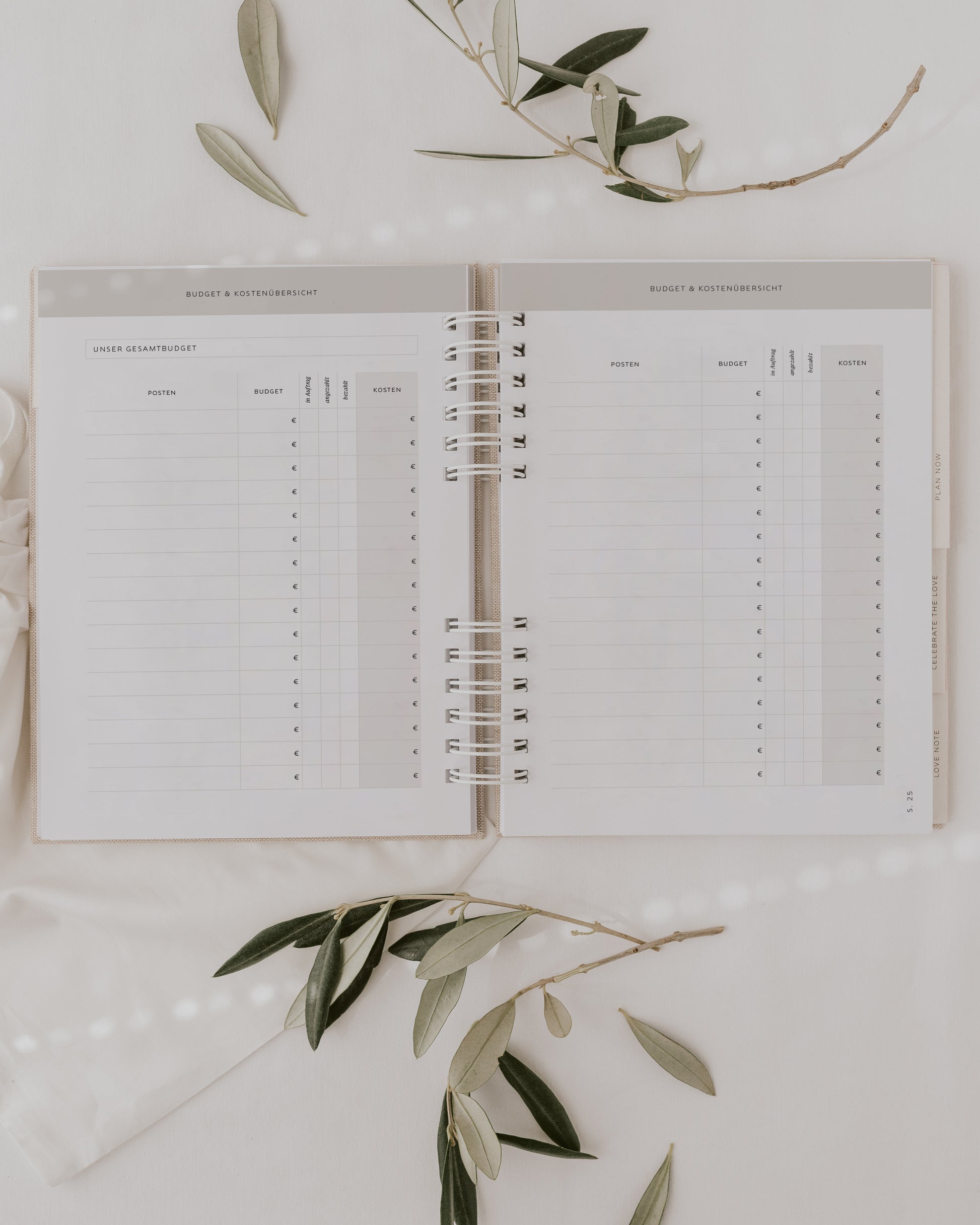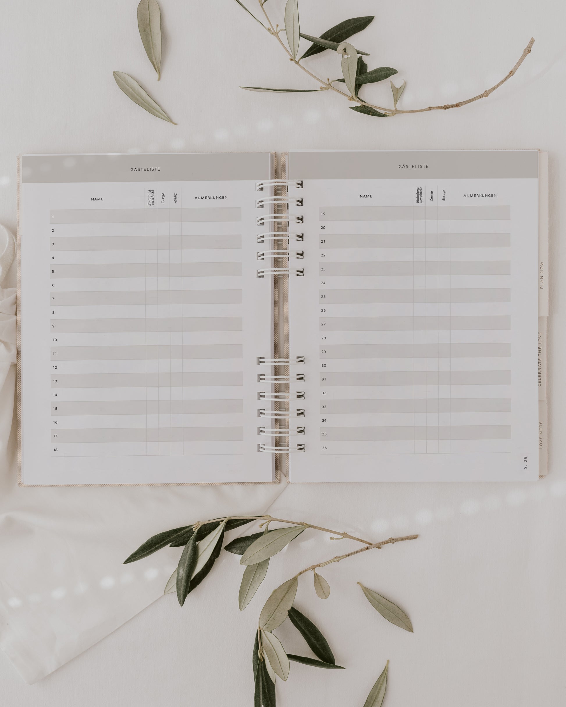 Der Hochzeitstag – unbestreitbar einer der aufregendsten Tage im Leben! Auch wenn die Liebe auf der Hochzeit natürlich die Hauptrolle spielt, gibt es noch so einige Planungspunkte, die über Unterschrift und „Sie dürfen die Braut/den Bräutigam nun küssen” hinausgehen. All diese Kleinigkeiten, die mit Fortschritt der Hochzeitsplanung immer größer werden, finden in diesem Wedding Planner in wunderschönem Leinen-Cover ihren Platz!